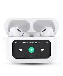 Black A9 Pro ANC Bluetooth 5.4 Wireless Earbuds with Smart Screen and Active Noise Cancellation